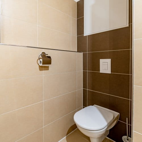 Do bytu se můžete rovnou nastěhovat, samozřejmě pokud vám vyhovují rozměry: obývací pokoj s jídelním koutem a kuchyní 25 m2, ložnice 15 m2, balkon/terasa 3,5 m2, prostorná chodba 4,7 m2, koupelna + WC 6,7 m2, a opravdu velký sklep 4 m2, k bytu náleží garážové stání v přízemí domu.