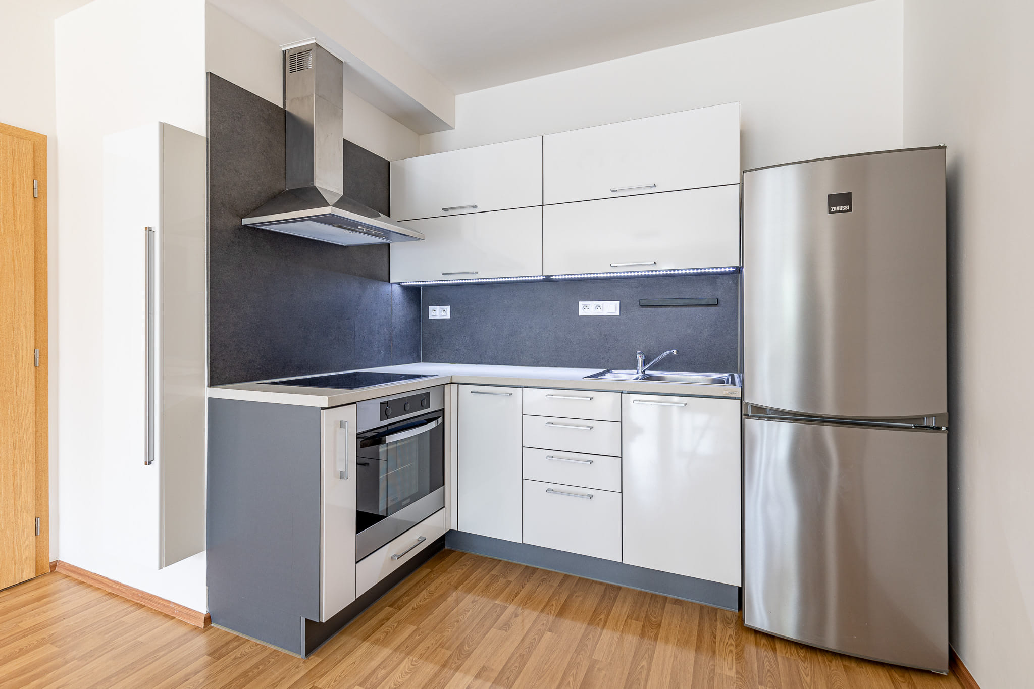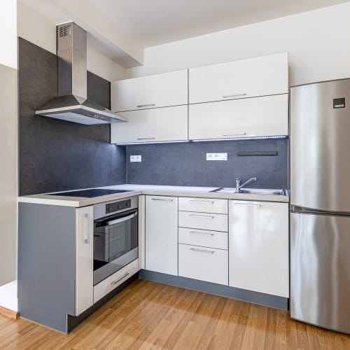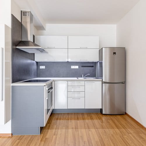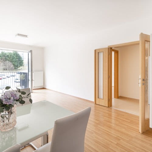 Součástí ceny je kuchyňská linka, stůl + 4 židle, skříň v chodbě. Podlahy jsou plovoucí laminátové a keramická dlažba.