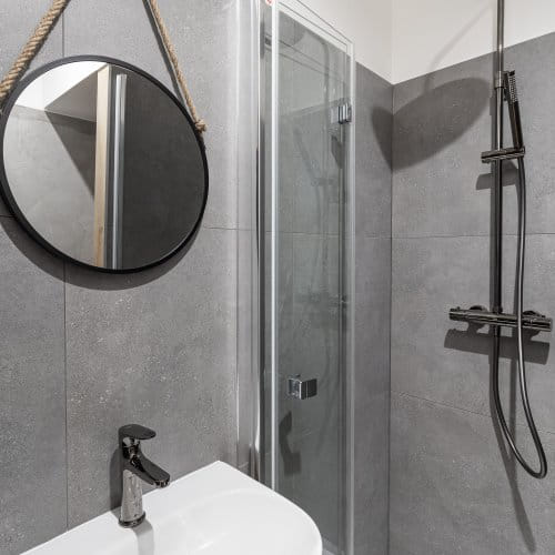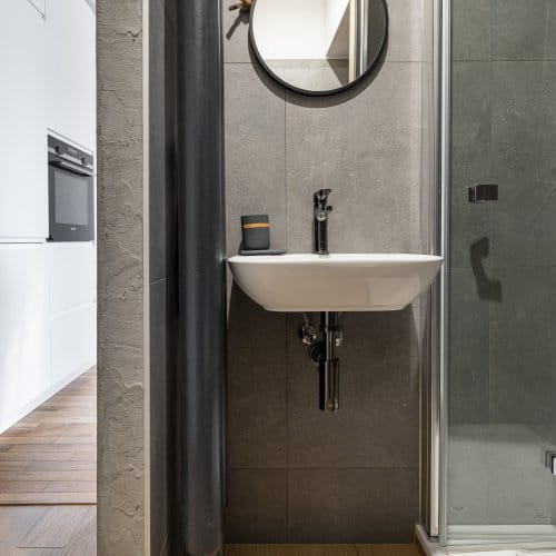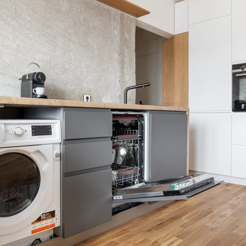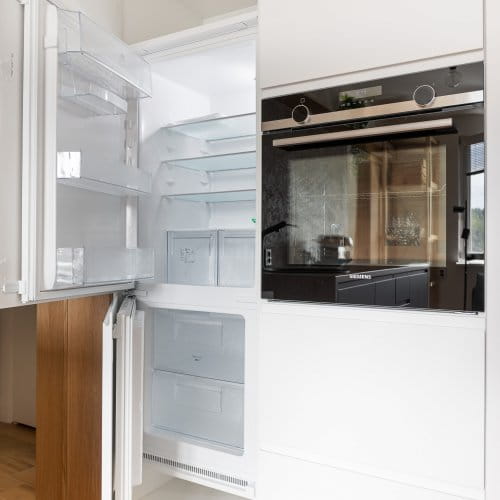 Kuchyň i koupelnu jsme vybavili spotřebiči vyšší řady. Trouba se umí sama vyčistit, pračka rovnou zkombinovaná se sušičkou. Zkrátka vždycky něco navíc, co učiní vaše bydlení příjemnějším.