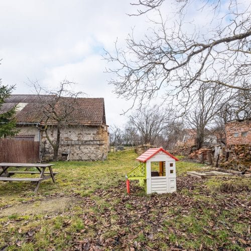 Zahrada je opravdu krásná, ovšem spíše divoká. Pokud patříte mezi ty, pro které jsou zahradní práce blahodárným aktivním odpočinkem, zde se budete rozhodně mít kde a jak realizovat. Udírna, pískoviště, trampolína, houpačka, venkovní tělocvična… nemusíte vybírat, prostor se najde pro všechno jmenované. K zahradě náleží stodola (není zapsaná v KN), kterou můžete předělat na cokoliv se Vám bude hodit, třeba na letní dům s celoročním posezením, grilem, případně i saunou a ochlazovacím bazénkem. Meze vlastní fantazii zde můžete klást jen vy sami, stodola svými rozměry i umístěním přímo vyzývá k tomu, aby se pro ni našlo nové využití.