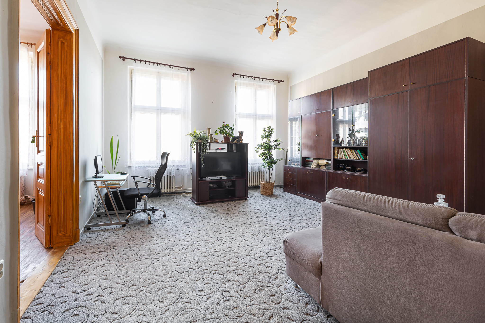 Původní byt byl o velikosti 2+1 s velkou koupelnou. Drobnou dispoziční úpravou je nyní užíván jako 3+1. Výhodou tohoto bytu jsou velké pokoje s dubovými parketami a vysoké stropy, kde se nabízí zbudování galerii na spaní případně pracovnu. Byt lze zařídit tak, že si zde každý najde své soukromí. Kuchyně a ložnice navazuje na velkou lodžii, která je orientována do dvora mezi stromy a zeleň. Pro uložení sezónních věcí slouží sklep o velikosti 10 m2 (není započítán v podlahové ploše). Byt má plastová okna, novou elektriku, původní parkety překryté kobercem, krásné dveře, které jsou natřené béžovou barvou. Topení je řešeno vlastní plynovým kotlem. Co je nevyhovující je koupelna, věříme, že s tou si šikovný architekt poradí.
