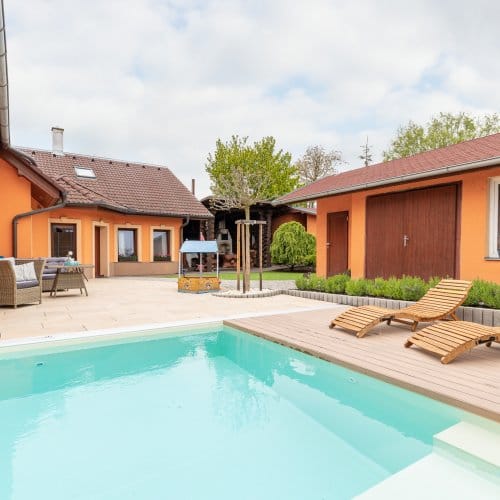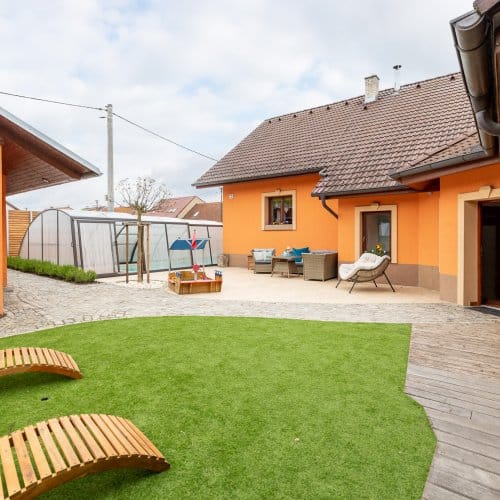A co děti? Rozhodně si budou mít kde a jak hrát. S houpačkami, trampolínou, schovávačkami a hlavně bazénem je o zábavu postaráno.