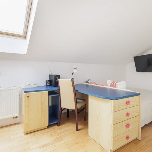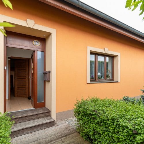 Toliko k přízemí. V patře je prostor pro další samostatnou bytovou jednotku. Proto to slůvko ‚‚zatím‘‘ o pár řádků výše. V půdním prostoru jsou už teď všechny IS, vstup je plánován po samostatném venkovním schodišti. Stavební dokumentace je připravená, sousedé se stavbou souhlasí. Čeká se jen na váš pokyn a můžete se pustit do úprav. Můžete, nemusíte, možná až časem. Ale možnosti tu jsou. (Pro dokončení počítejte zhruba s milionem až třemi, pokud budete zasahovat do střechy. Stávající majitel je ve stavebnictví jako ryba ve vodě, takže pro velkou pomoc nemusíte chodit daleko.) Nejdůležitější je, že o velkých stavebních akcích rozhodujete jen vy sami. Dům v příštích letech velké opravy vyžadovat nebude.
