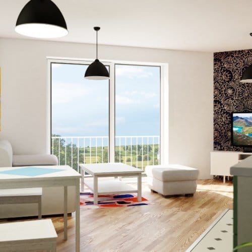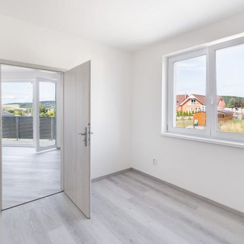 Výměry: obývací pokoj s KK 24 m2, ložnice 13 m3, koupelna 5 m2, balkon 6 m2, chodba 7,5 m2, sklep 4,7 m2