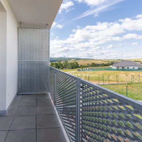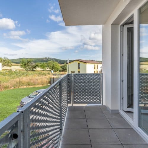 K večernímu relaxu přímo vybízí prostorný balkon, kde se kromě čerstvého vzduchu nabažíte i hezkého výhledu do okolí.