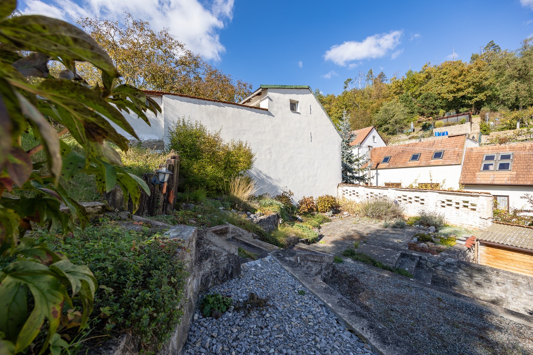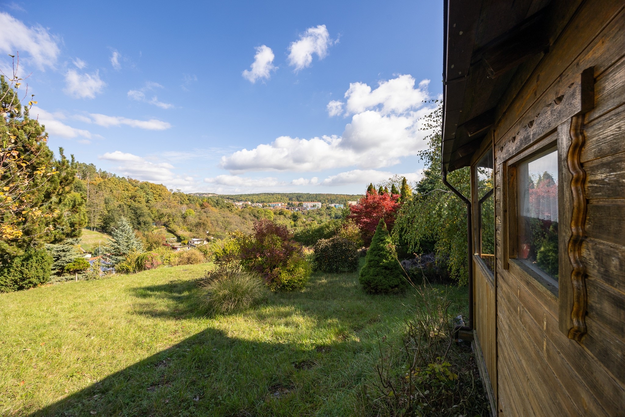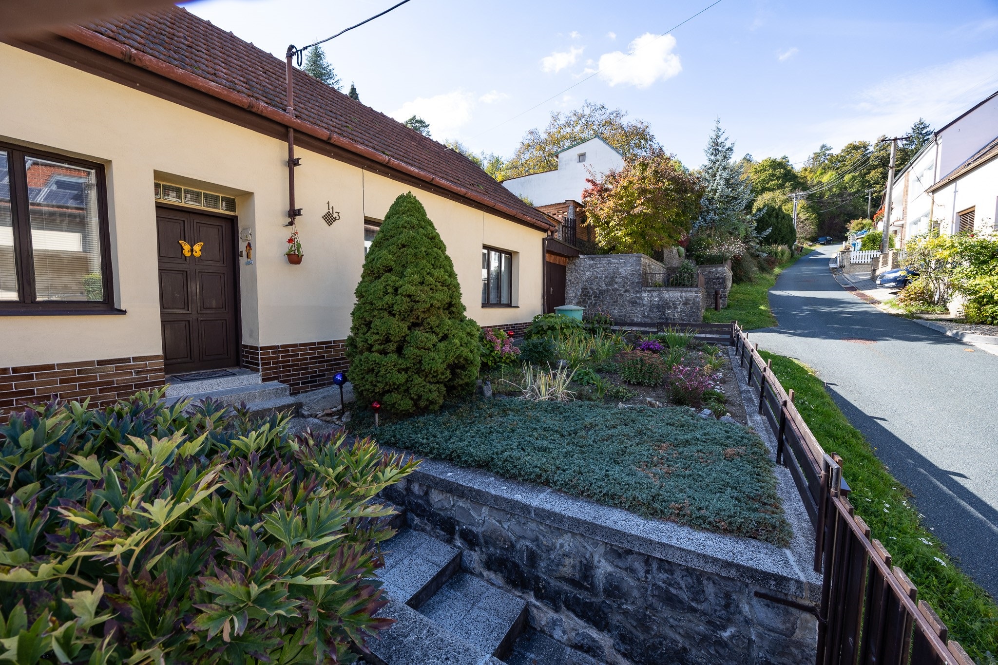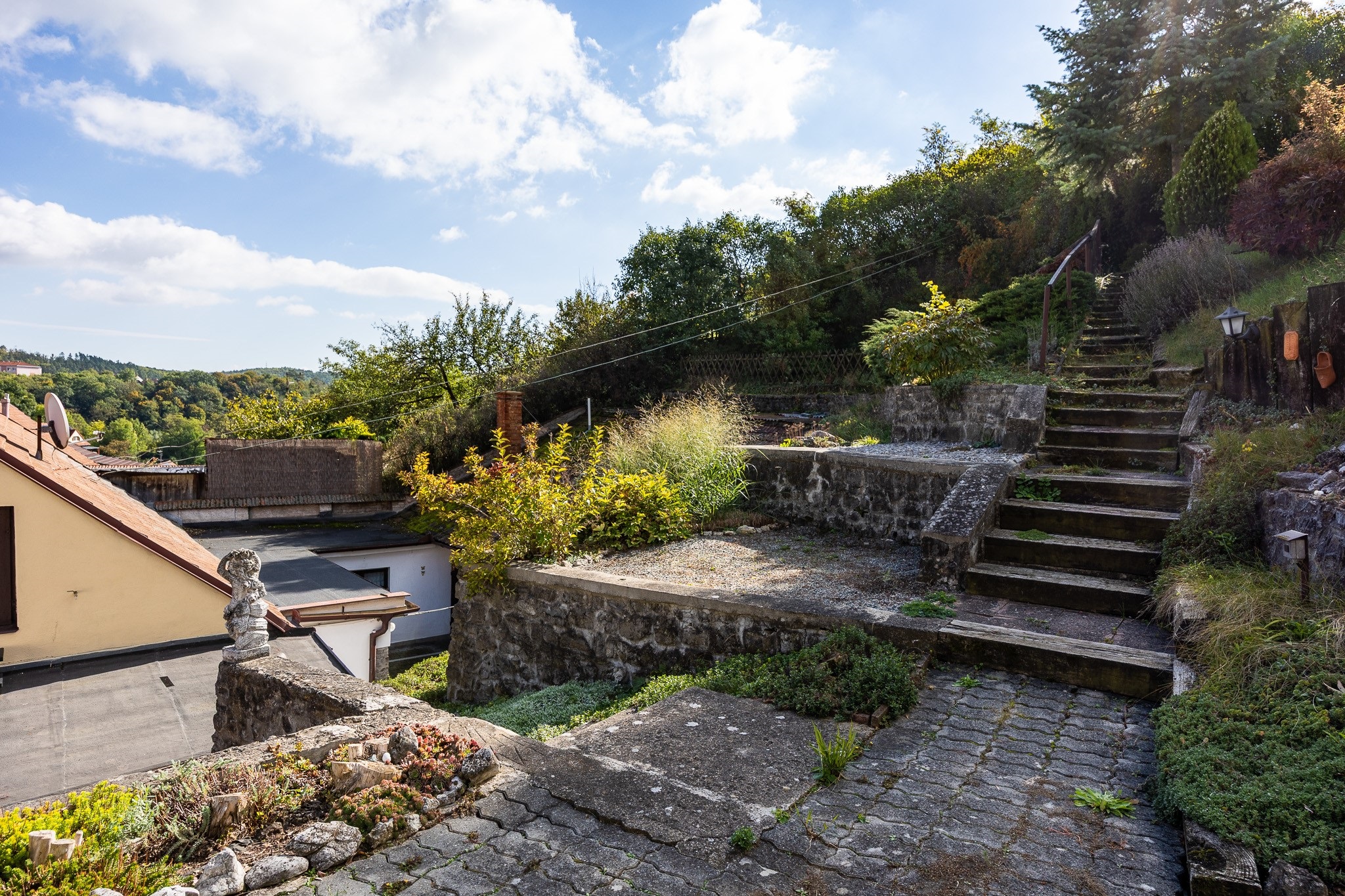 Absolutně největším plus domu je zahrada. To jen tak někdo nemá. Do zahrady vede kamenné schodiště s terasou, krásná řemeslná práce. Stávající osázení zahrady, stromy a keře jsou v dobrém stavu a dohromady tvoří hezký celek, zahrada působí kompletním dojmem a nic tu nechybí. Pozemek je pro pěší přístupný i ze zadní strany a vzhledem k tomu, že je zde zavedena sezonní voda i elektřina, nabízí se další způsoby, jak zahradu využít. Může zde stát třeba altán, maringotka, takzvaný tiny house nebo obytný posed. Výhledy do okolí totiž stojí za to využít.