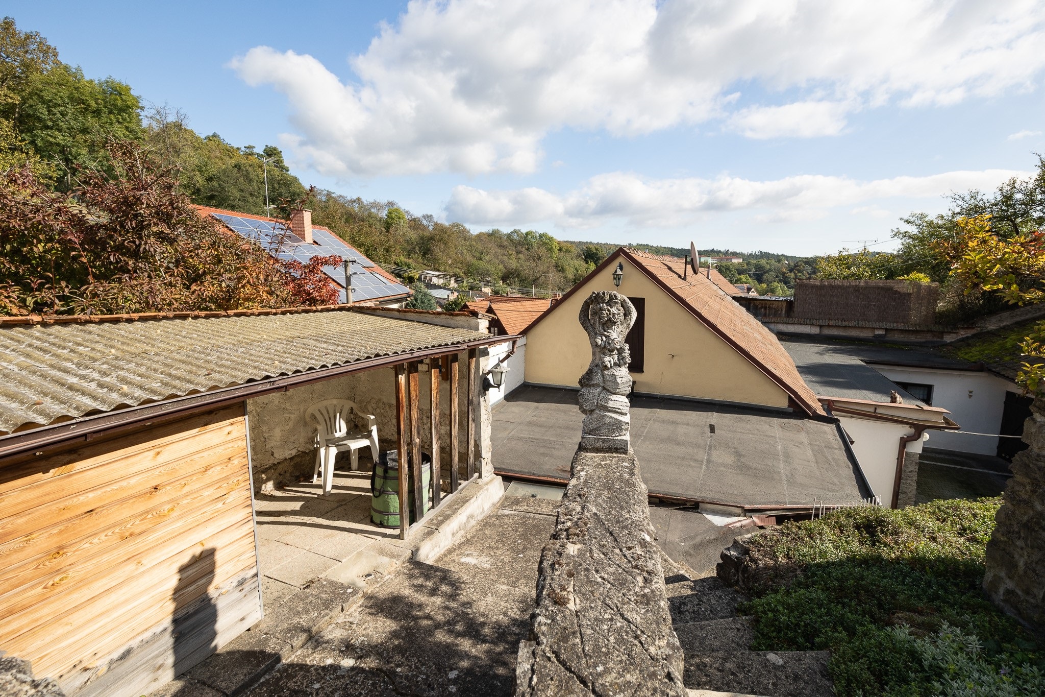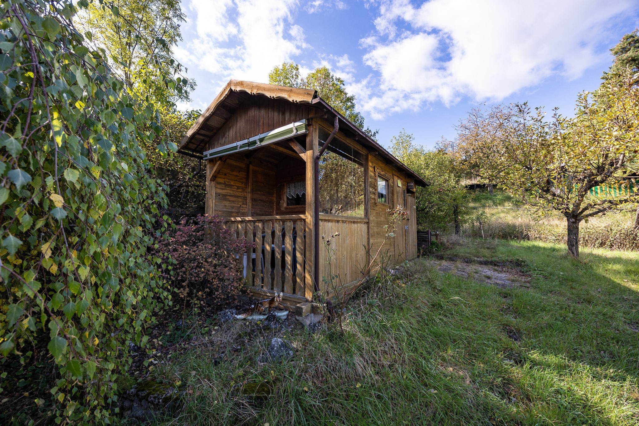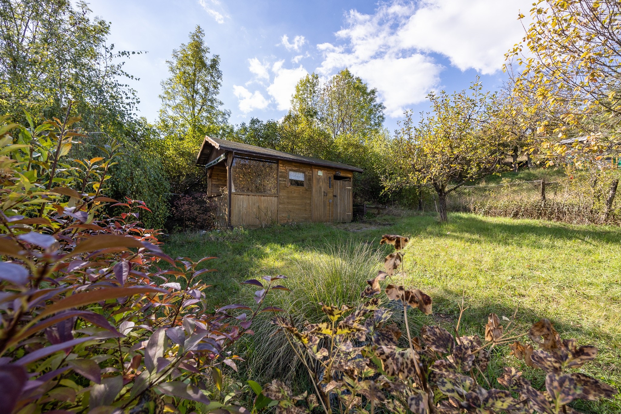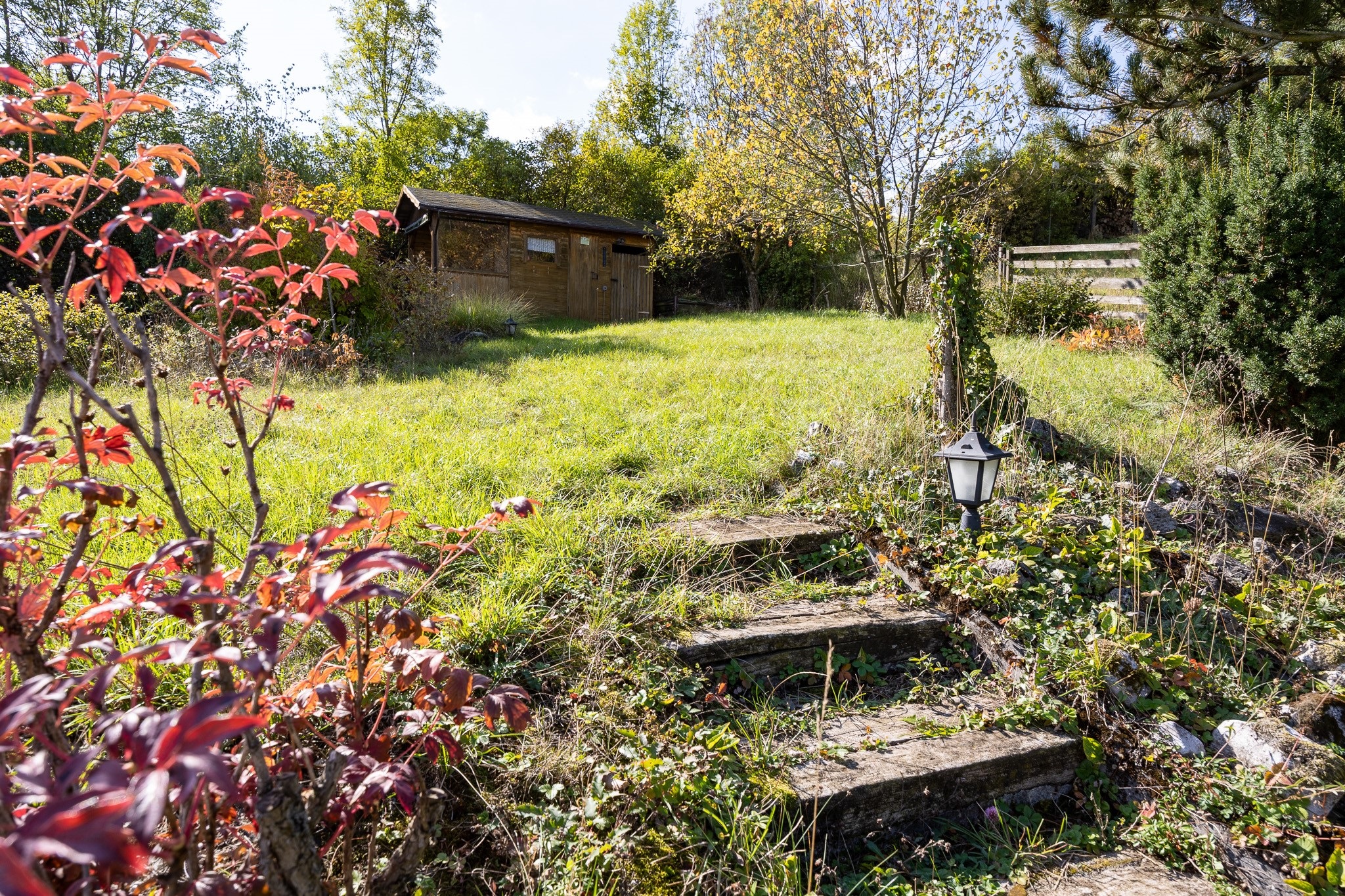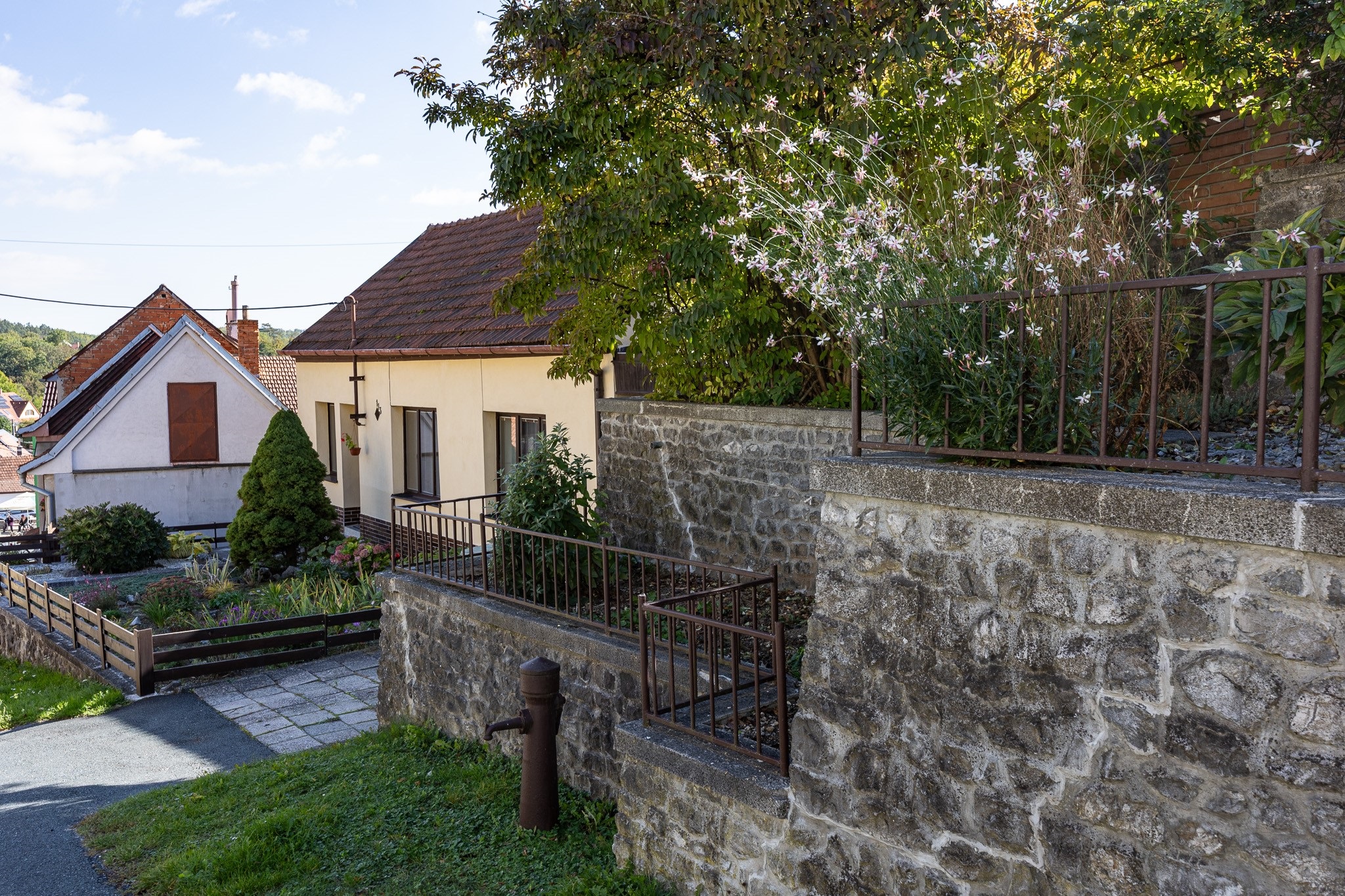 Absolutně největším plus domu je zahrada. To jen tak někdo nemá. Do zahrady vede kamenné schodiště s terasou, krásná řemeslná práce. Stávající osázení zahrady, stromy a keře jsou v dobrém stavu a dohromady tvoří hezký celek, zahrada působí kompletním dojmem a nic tu nechybí. Pozemek je pro pěší přístupný i ze zadní strany a vzhledem k tomu, že je zde zavedena sezonní voda i elektřina, nabízí se další způsoby, jak zahradu využít. Může zde stát třeba altán, maringotka, takzvaný tiny house nebo obytný posed. Výhledy do okolí totiž stojí za to využít.
