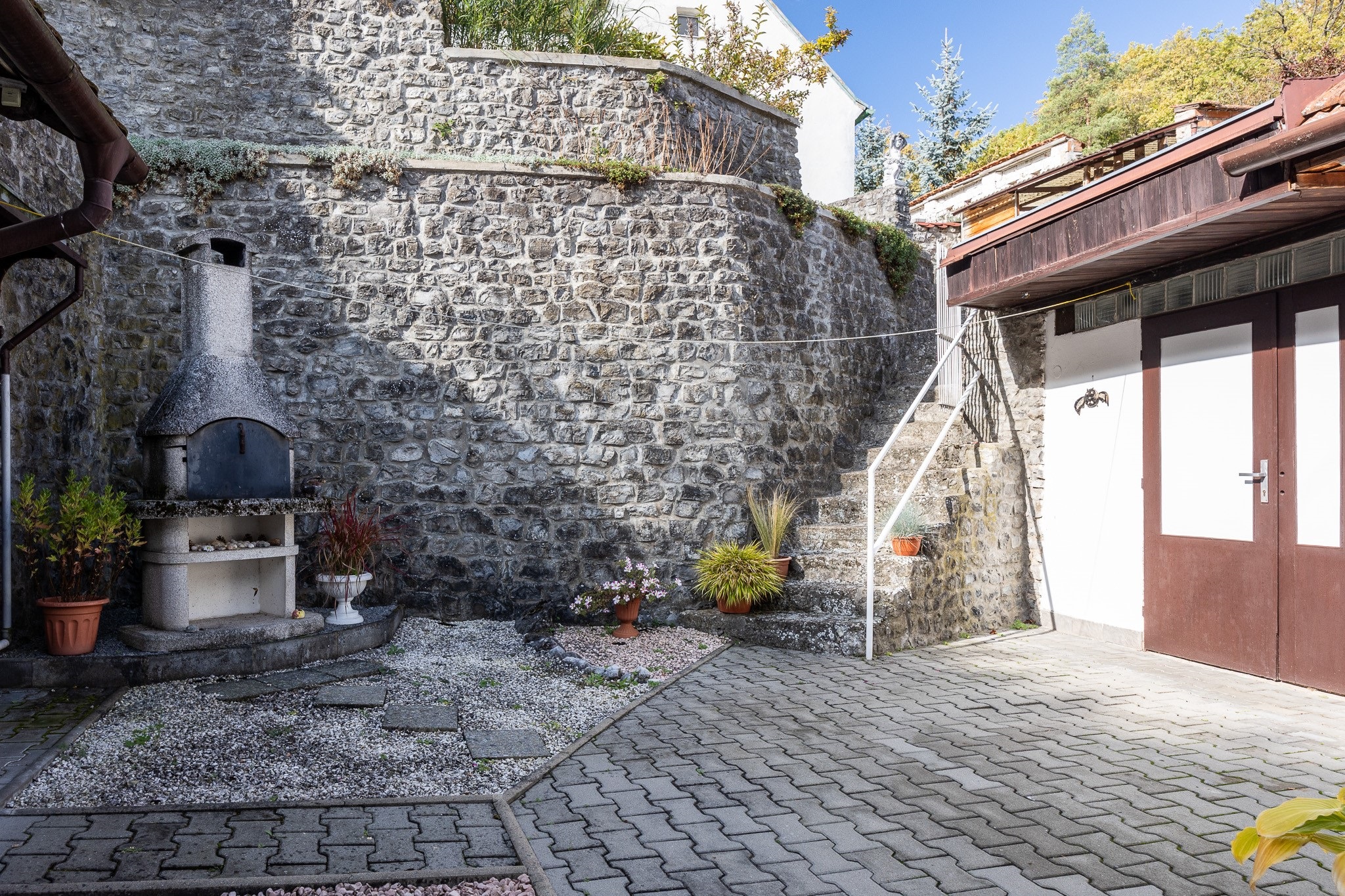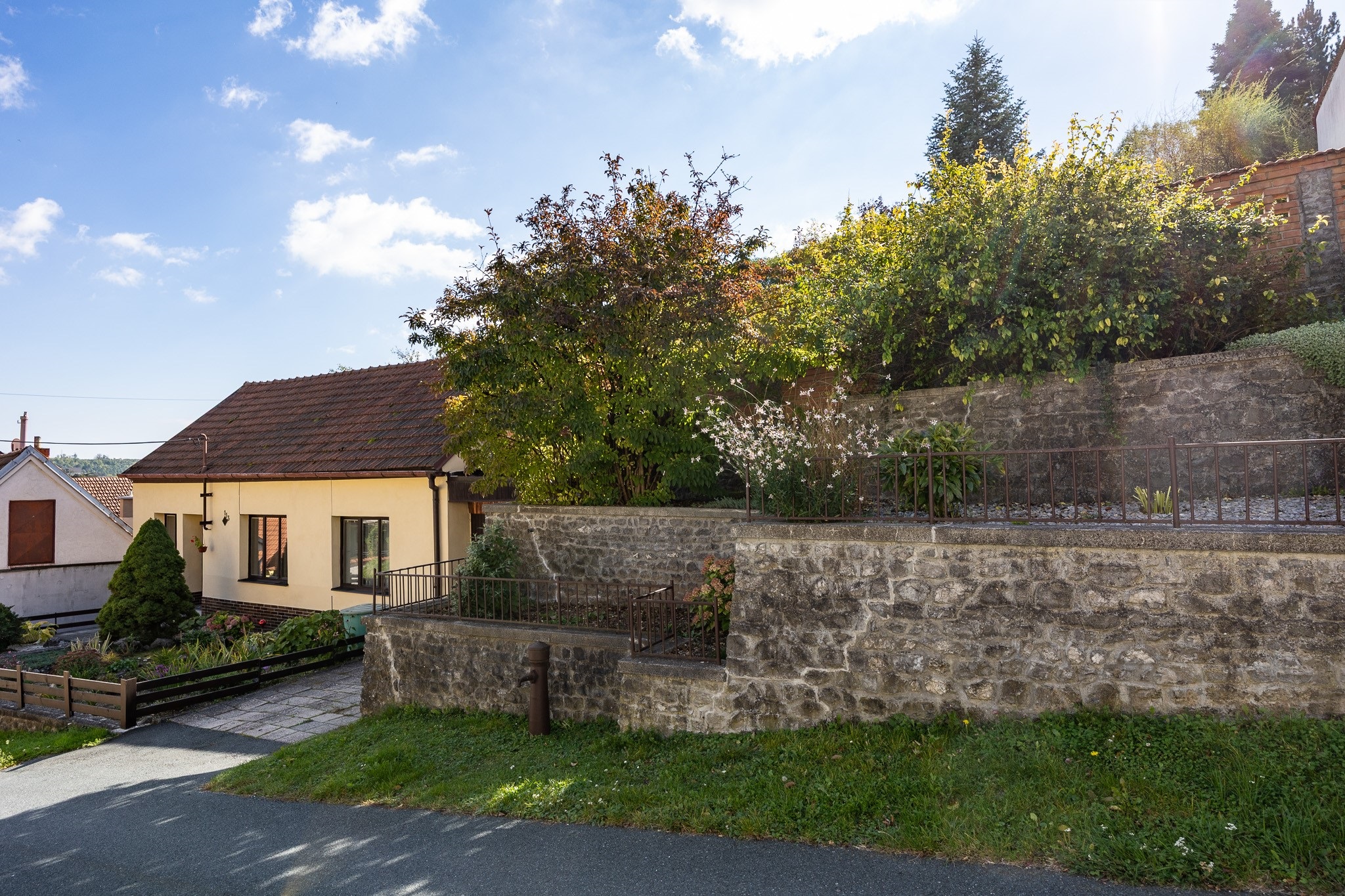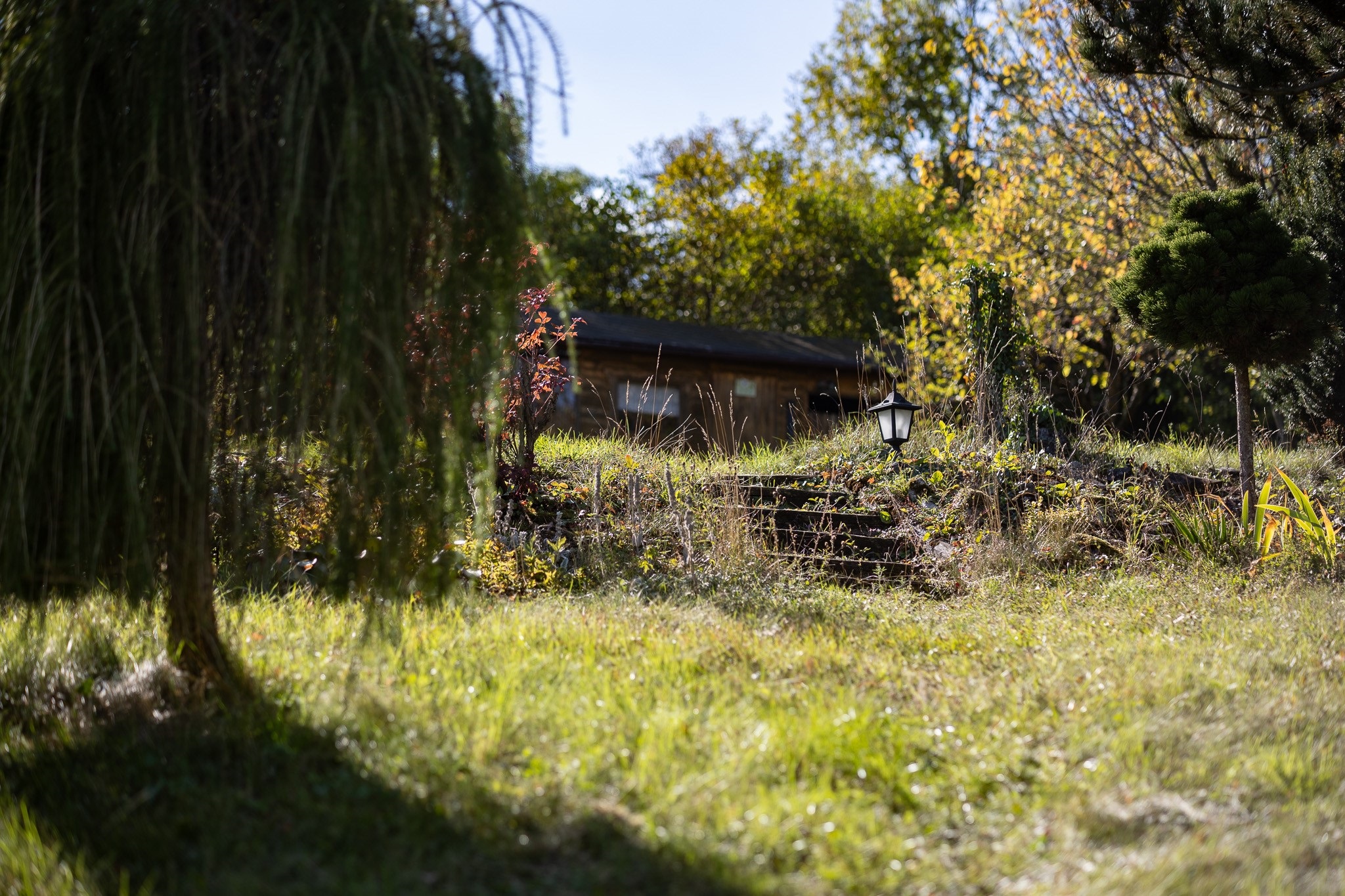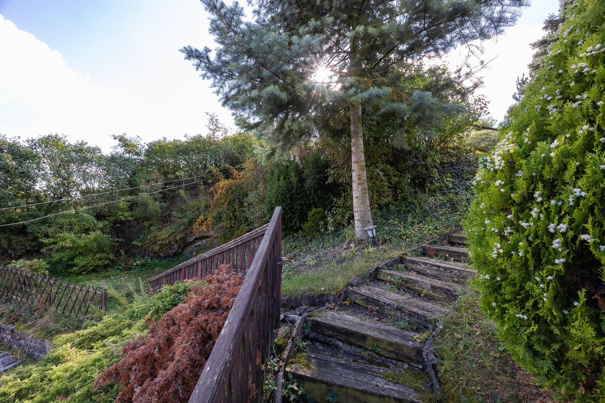 Absolutně největším plus domu je zahrada. To jen tak někdo nemá. Do zahrady vede kamenné schodiště s terasou, krásná řemeslná práce. Stávající osázení zahrady, stromy a keře jsou v dobrém stavu a dohromady tvoří hezký celek, zahrada působí kompletním dojmem a nic tu nechybí. Pozemek je pro pěší přístupný i ze zadní strany a vzhledem k tomu, že je zde zavedena sezonní voda i elektřina, nabízí se další způsoby, jak zahradu využít. Může zde stát třeba altán, maringotka, takzvaný tiny house nebo obytný posed. Výhledy do okolí totiž stojí za to využít.