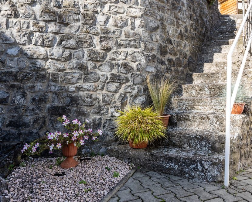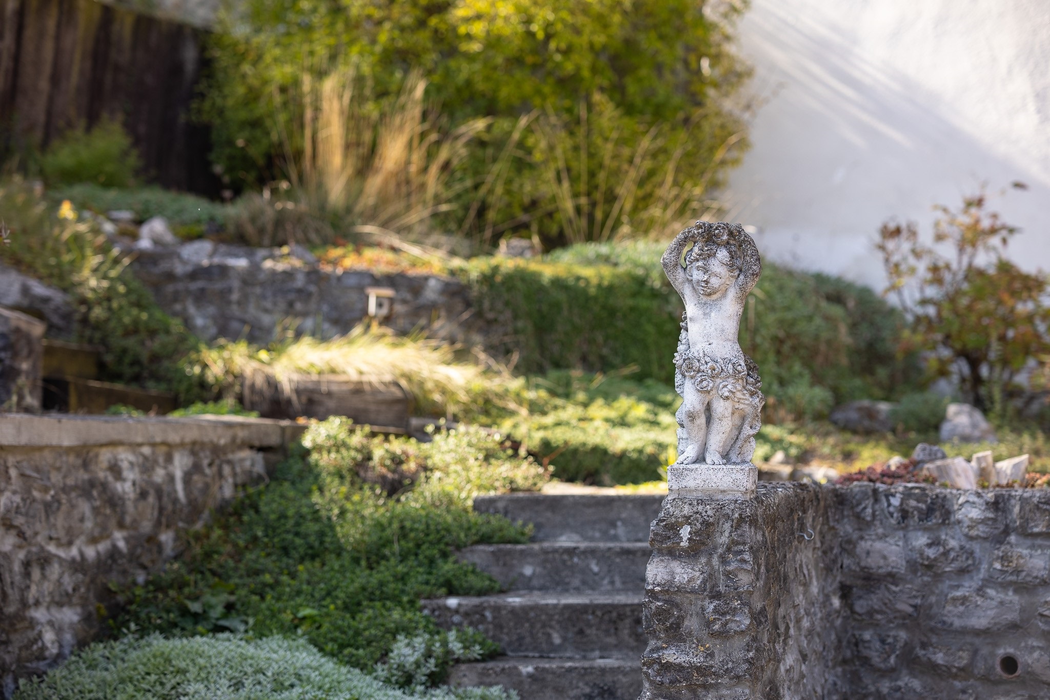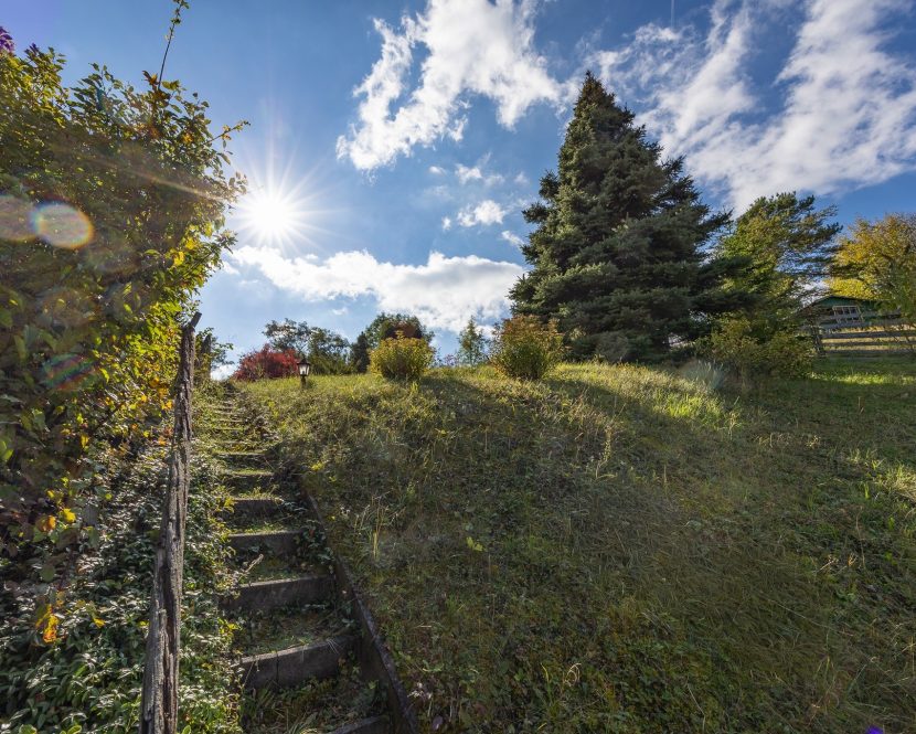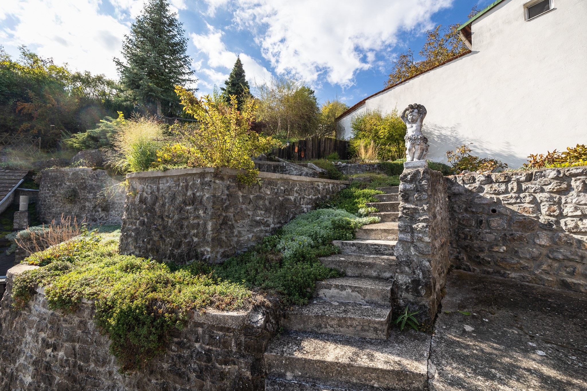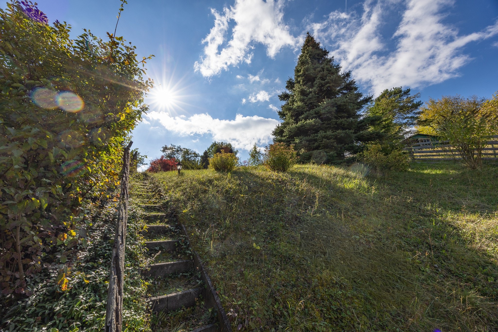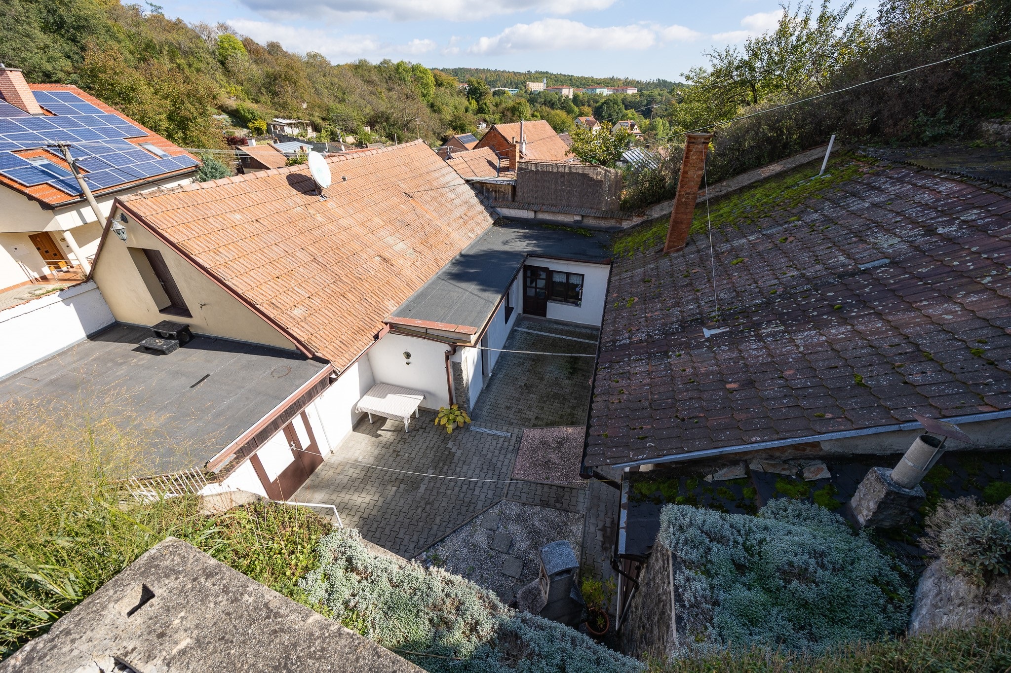 Absolutně největším plus domu je zahrada. To jen tak někdo nemá. Do zahrady vede kamenné schodiště s terasou, krásná řemeslná práce. Stávající osázení zahrady, stromy a keře jsou v dobrém stavu a dohromady tvoří hezký celek, zahrada působí kompletním dojmem a nic tu nechybí. Pozemek je pro pěší přístupný i ze zadní strany a vzhledem k tomu, že je zde zavedena sezonní voda i elektřina, nabízí se další způsoby, jak zahradu využít. Může zde stát třeba altán, maringotka, takzvaný tiny house nebo obytný posed. Výhledy do okolí totiž stojí za to využít.
