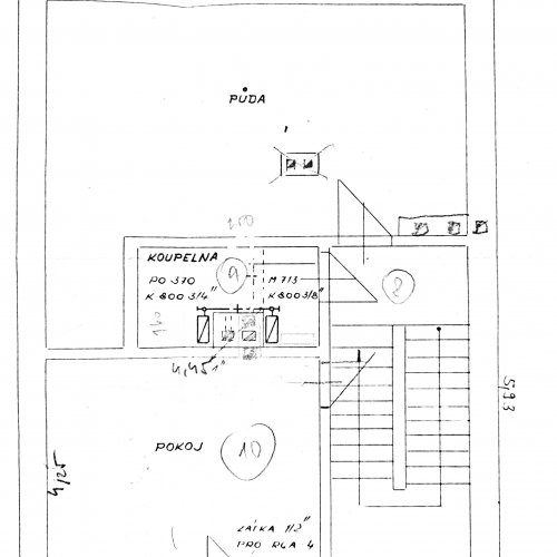 První patro 75 m2 – pokoj 16 m2 s balkonem 3 m2, koupelna 4 m2, schodiště 6m2, podesta 6 m2, volná půda 26 m