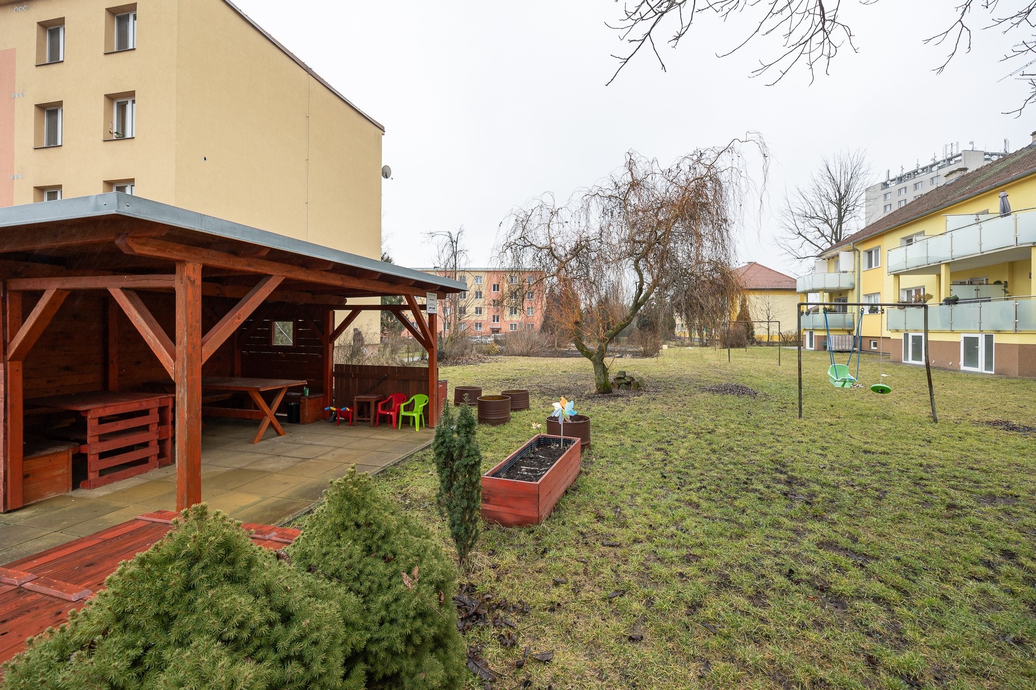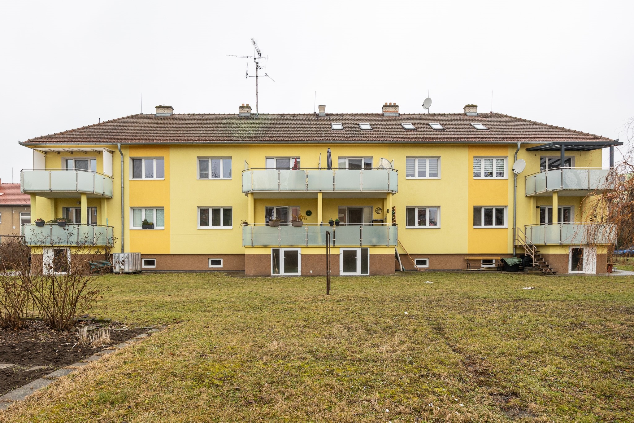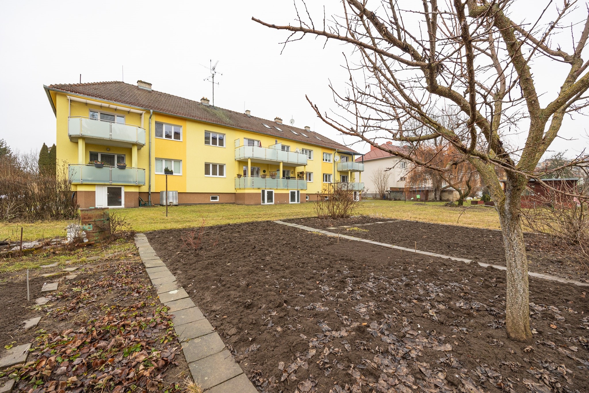 Dům je cihlový, což je dobrý základ z hlediska soukromí, nežádoucího hluku z okolních bytů i v otázce nákladů. Ty činí jen 2.300 Kč + 2.800 Kč elektřina. Za symbolických pár stovek ročně si můžete od města pronajmout kousek zahrady a využít ho zcela dle svých představ.