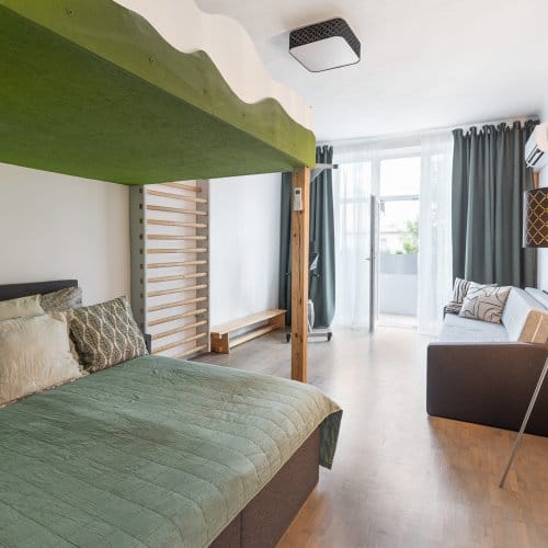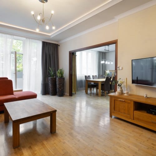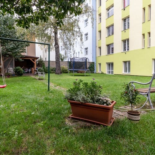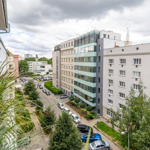 Byt je pár let po kompletní rekonstrukci. Čekají Vás tu dřevěné podlahy, vysoké stropy (cca 3,4 m) a dostatek úložných prostor. V pokojích do ulice můžete využít i klimatizaci. Topení i ohřev vody má na starost úsporný kotel umístěný v koupelně. Celý dům je v dobré kondici a potěší i s citem opravné společné prostory. Využít můžete i společnou zahradu v uzavřeném vnitrobloku.