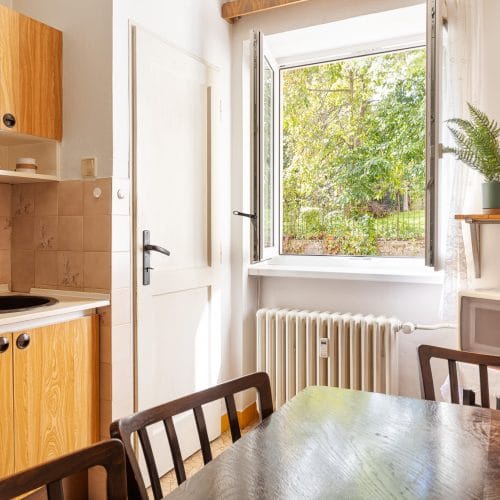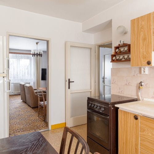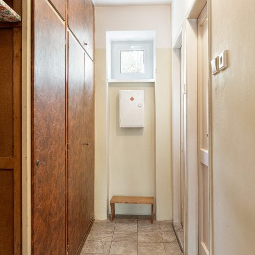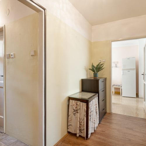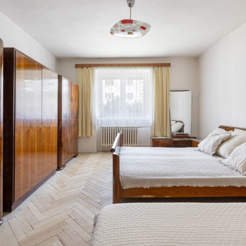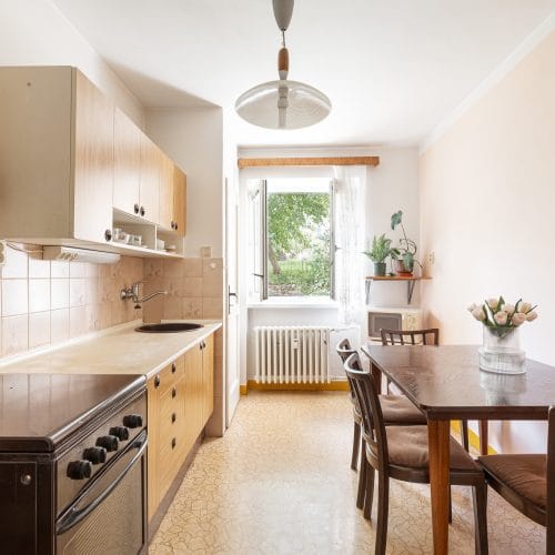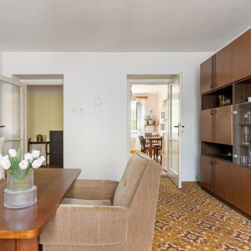 Ačkoliv je k rekonstrukci, je prostor plně funkční a s veškerým vybavením. Což je dobrá zpráva, pokud byste uvažovali o bytu na investici a k okamžitému pronájmu. V opačném případě, rozhodnete-li se byt předělat k obrazu svému, vám bude hrát do karet logické rozložení obytných místností, oddělená koupelna a toaleta i prostorná chodba. Na chodbě s pomocí šikovného truhláře vykouzlíte dostatek úložného prostoru na všechno, co tak běžně potřebujete k žití. Z kuchyně je báječný výhled do zahrádky a v pokojích stojí za zmínku původní, opravdu hezky provedené parkety. Mimochodem rozvody elektřiny v bytě i v domě jsou v mědi, což Vám při rekonstrukci může ušetřit pár desítek tisíc.