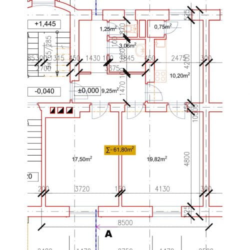 Výměry bytu: CP 66,8 m2, obývací pokoj 19,82 m2, ložnice 17,5 m2, kuchyně se spíží 11 m2, chodba 9,25 m2, koupelna 3,06 m2, WC 1,25m2, sklep 5 m2.