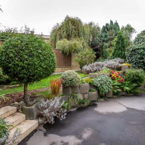 Vila je obklopena již vzrostou zahradou s pestrými zákoutími a poskytuje dostatečné soukromí. Pro relaxaci slouží bazén (3x6m) a sauna v zahradním domku na konci pozemku.